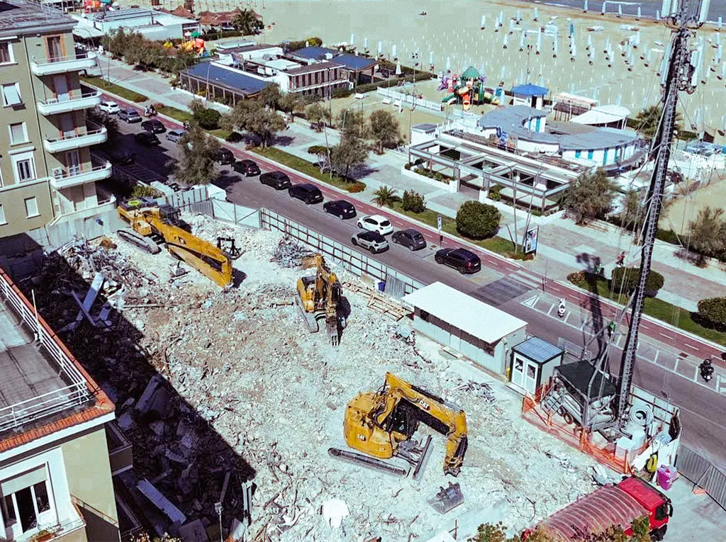 Un intervento chirurgico nel cuore pulsante di Pescara. La demolizione dello storico Hotel Carlton ha richiesto una pianificazione logistica impeccabile per operare in sicurezza in un’area ad alta densità abitativa. Abbiamo utilizzato pinze idrauliche di precisione e sistemi di abbattimento polveri per minimizzare l’impatto ambientale, garantendo il recupero immediato dei materiali di risulta grazie al nostro ciclo integrato.